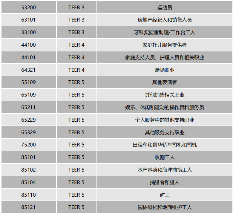 阿省AOS项目不合格职业清单